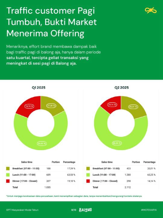 - Validasi dengan data: porsi transaksi sarapan meningkat di Q2 2025, dan revenue Q2 tercatat 34,5% di atas target.